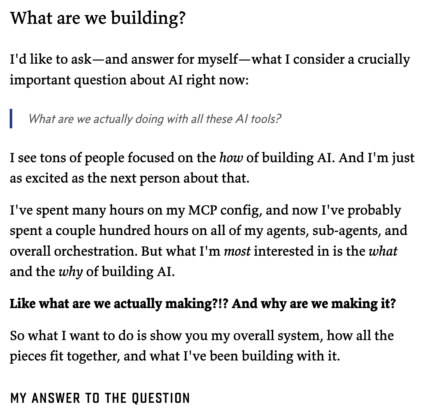 My goal with this video is to get you thinking about your own tasks, and your own life management system, and your career management system, and your information management system, and what such a thing could look like if it were unified and upgradeable.