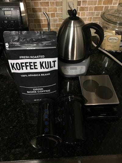 I also just bought 2 pounds of Koffee Kult coffee, which arrived today. I also just received two AeroPress metal filters—one regular and one fine.