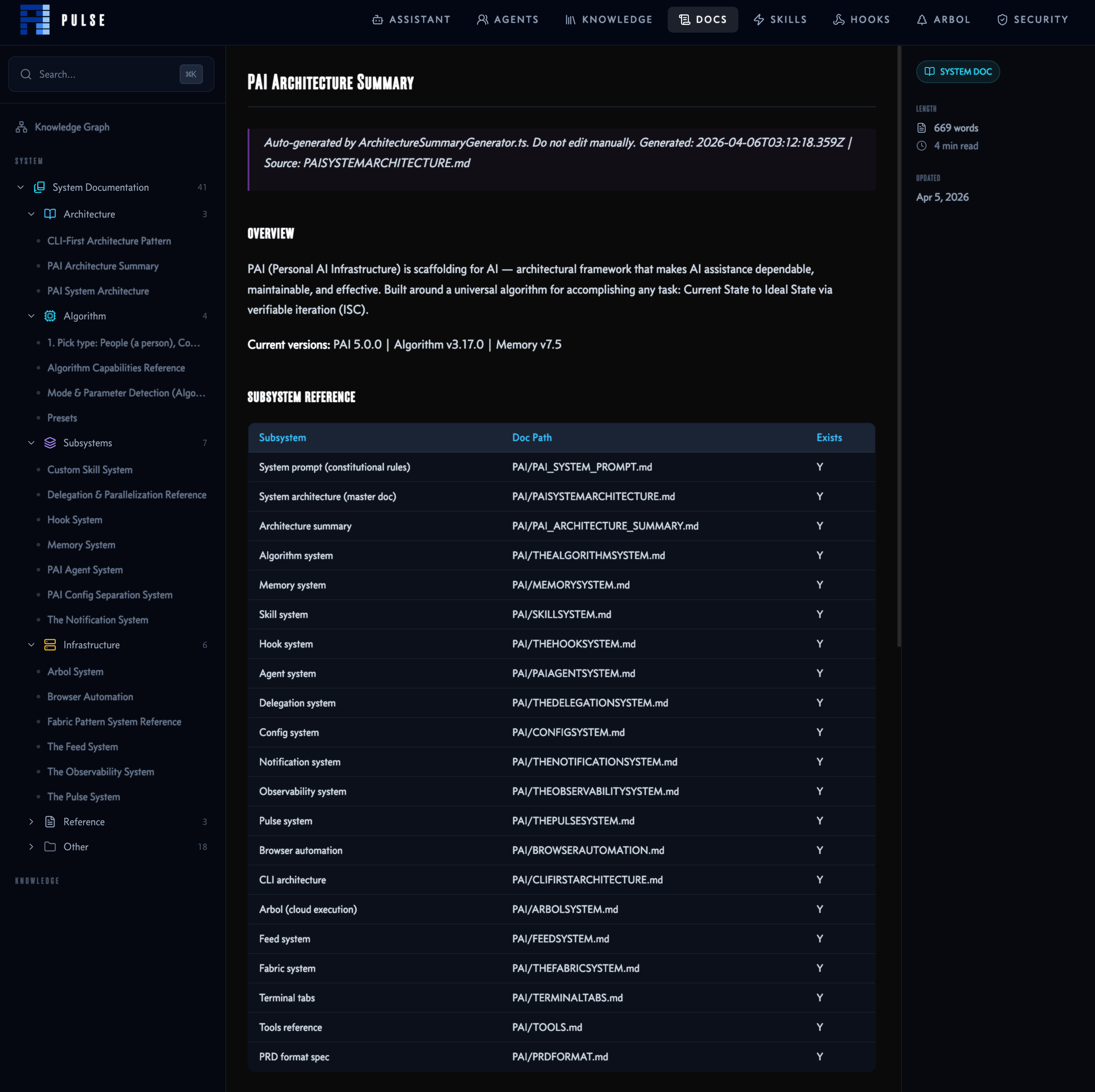 The PAI version has full docs for PAI, all our knowledge and learnings, and tons of other stuff. We have an advantage because we've been thinking about this since the beginning of PAI, so it was easy to just add this front end to it.